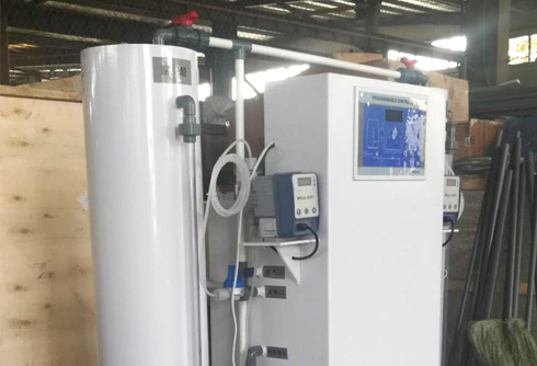 二氧化氯发生器是以电解槽通过电解或者化学反应产生出具有强氧化性的二氧化氯气体,利用其强氧化性杀死水中的细菌、病毒、有机物等有毒物质的一种组合杀菌消毒设备。二氧化氯发生器设备一般由电解槽(或反应器)、供药泵、控制器、压力容器等和电气控制系统组成。