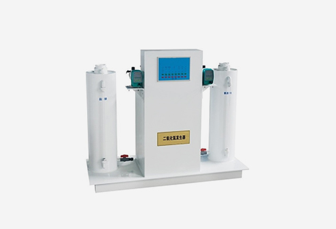 二氧化氯发生器是以电解槽通过电解或者化学反应产生出具有强氧化性的二氧化氯气体,利用其强氧化性杀死水中的细菌、病毒、有机物等有毒物质的一种组合杀菌消毒设备。二氧化氯发生器设备一般由电解槽(或反应器)、供药泵、控制器、压力容器等和电气控制系统组成。二氧化氯发生器产生的二氧化氯气体危险性较高,故对设备要求较高。反应需要的原料为盐酸和次氯酸钠,操作运行时注意安全使用。