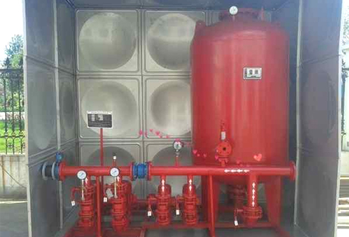 供水设备是由消防主泵、消防备用泵、稳压泵组、气压罐、压力传感器、控制柜等组成的自动启动灭火设备。消防给水设备平时由稳压泵组将管网压力稳定在设定值,火灾时消防主泵自动启动灭火。消防主泵发生故障时,消防备用泵自动投入运行。带有双电源切换装置,当主电发生故障时,可自动切换备用电源。